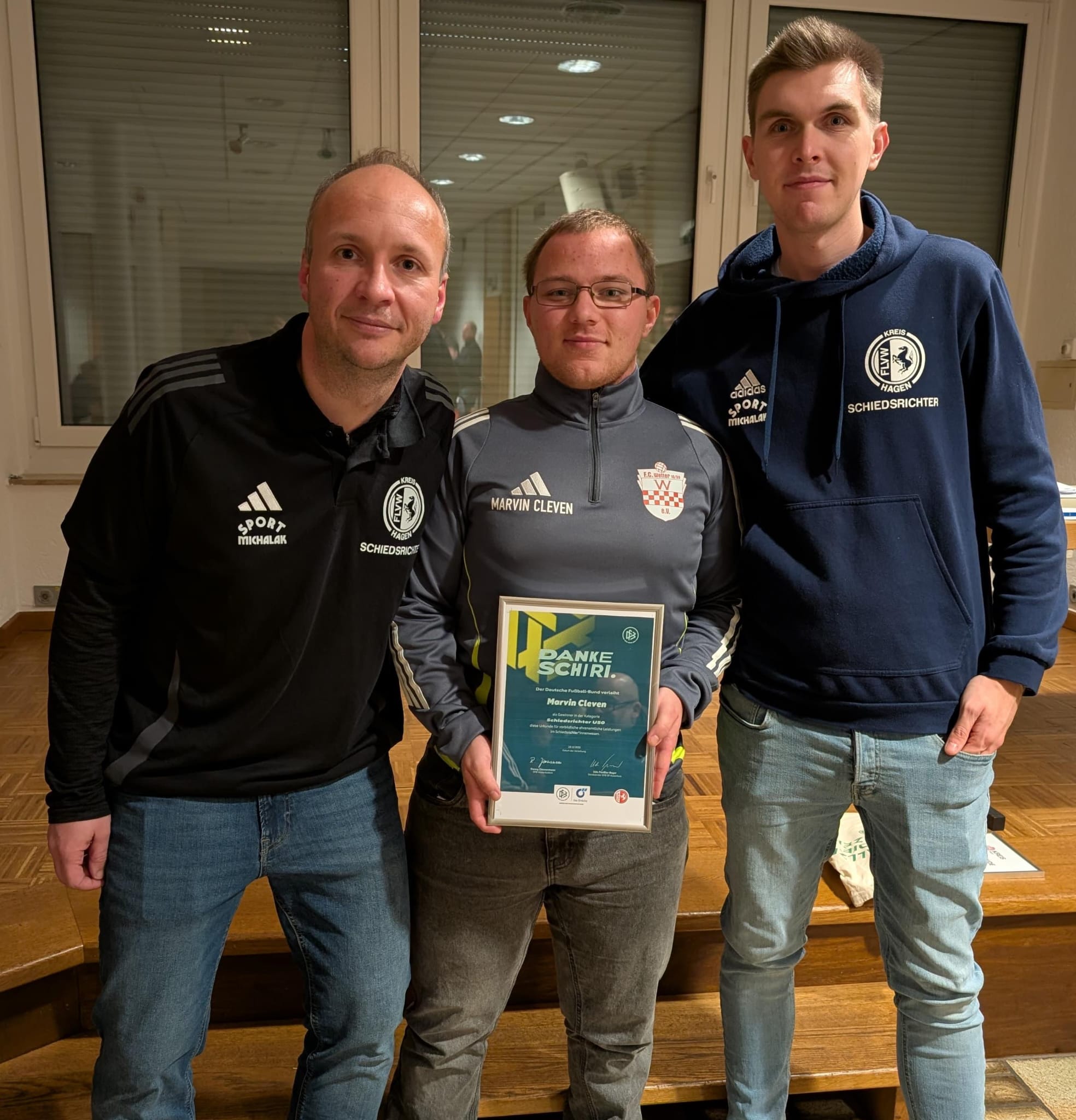Unser Vereinsmitglied und Schiedsrichter Marvin Cleven wurde für seine vorbildliche ehrenamtliche Leistung in dieser Saison ausgezeichnet.